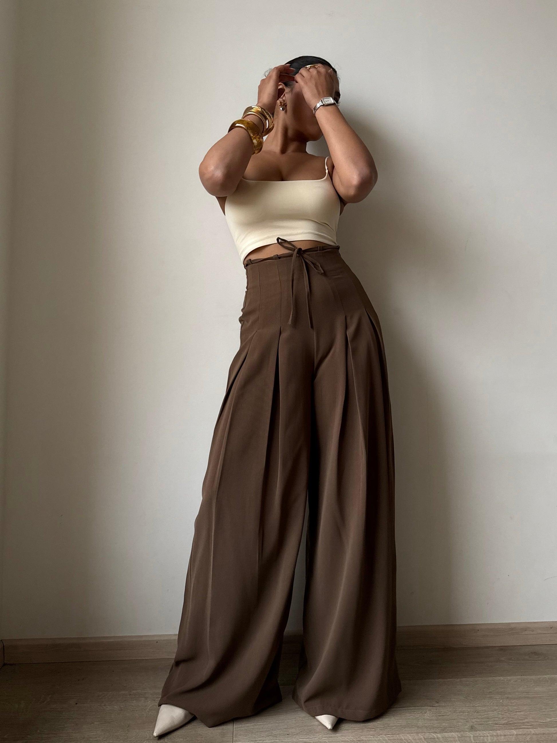 Cinched Drawstring Wide Leg Pants
